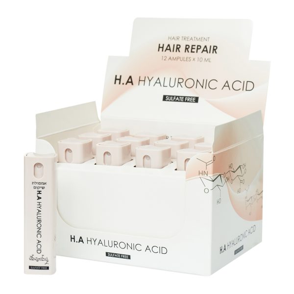 מארז של 12 יחידות אמפולות חומצה היאלורונית לשיקום השיער 10 מ”ל H.A.