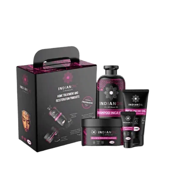מארז / ערכת Indian Oil שמן הודי כוללת, שמפו 1000 מ’’ל + מסכה 500 מ’’ל + סרום 150 מ’’ל + אמפולה 20 מ’’ל.