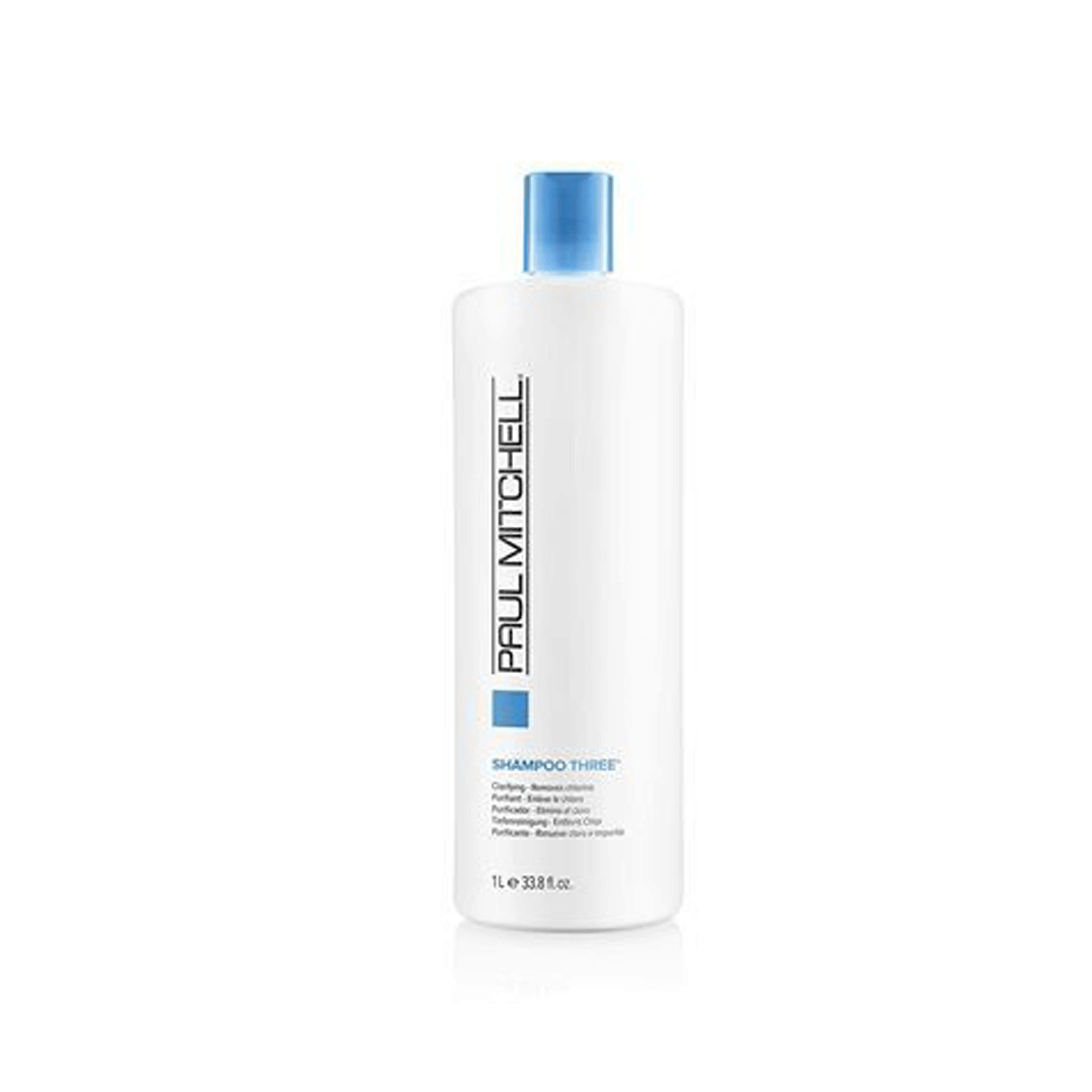 שמפו (3) Three מסדרת Clarifying של Paul Mitchell הוא שמפו לניקוי עמוק מכלור וממזהמים אחרים מסיר שאריות מתכת, טיפול תרופתי וזיהום אוויר. מומלץ לשימוש לפני טיפולי עומק כדי להבטיח תוצאות מקסימליות. מומלץ במיוחד לאחר שחייה כדי למנוע נזקי כלור.